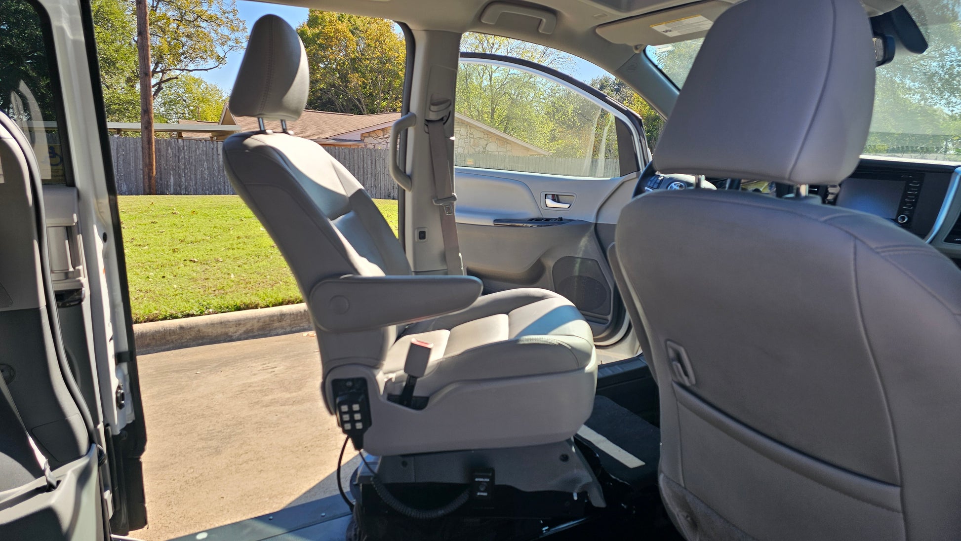 The automatic fold-out ramp offers fast, easy entry and stows securely for travel. With a 52”L x 29”W ramp and a 56”H x 31”W door opening, this Sienna accommodates most wheelchairs and power chairs with ease. The driver-side turnout seat allows for easier transfers into the driver position, giving users more independence and flexibility.