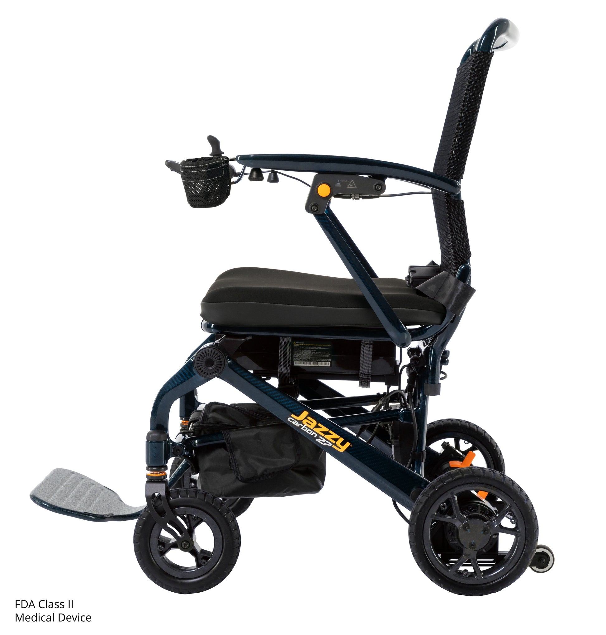 Power, performance, and portability all come together in the ultra-lightweight Jazzy® Carbon 27. Built with an advanced carbon fiber frame, this compact power wheelchair weighs just 27.8 lbs. without the battery, folds in seconds, and stores effortlessly—perfect for travel, day trips, or everyday mobility. Despite its featherweight design, it delivers the world-class durability and comfort that Jazzy® is known for.