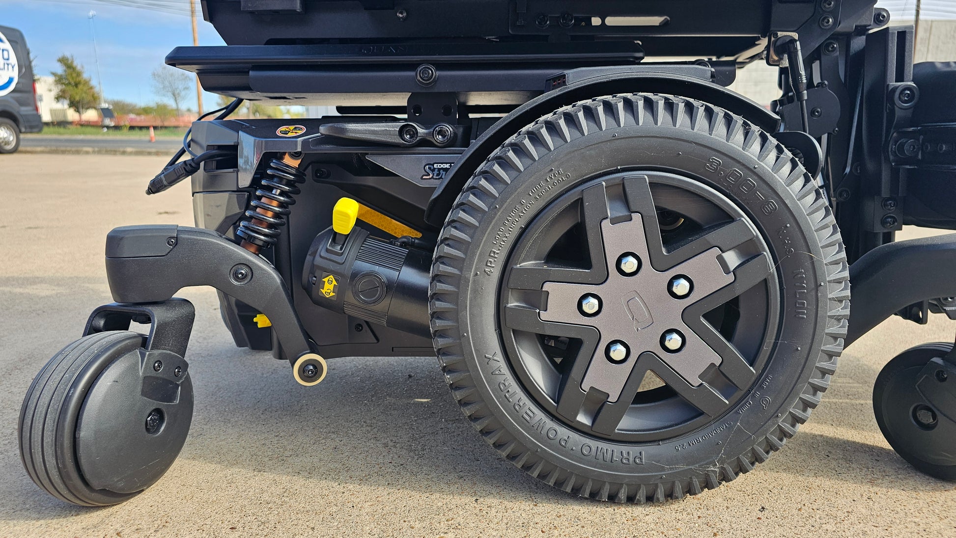 The Quantum Edge 3 Stretto® is the narrowest, most maneuverable power base in America — designed for users who need maximum performance in minimal space. This pre-owned model (only 0.3 miles, Serial #JF311023063020) is in excellent condition and ideal for adults who want comfort, confidence, and control in any setting.