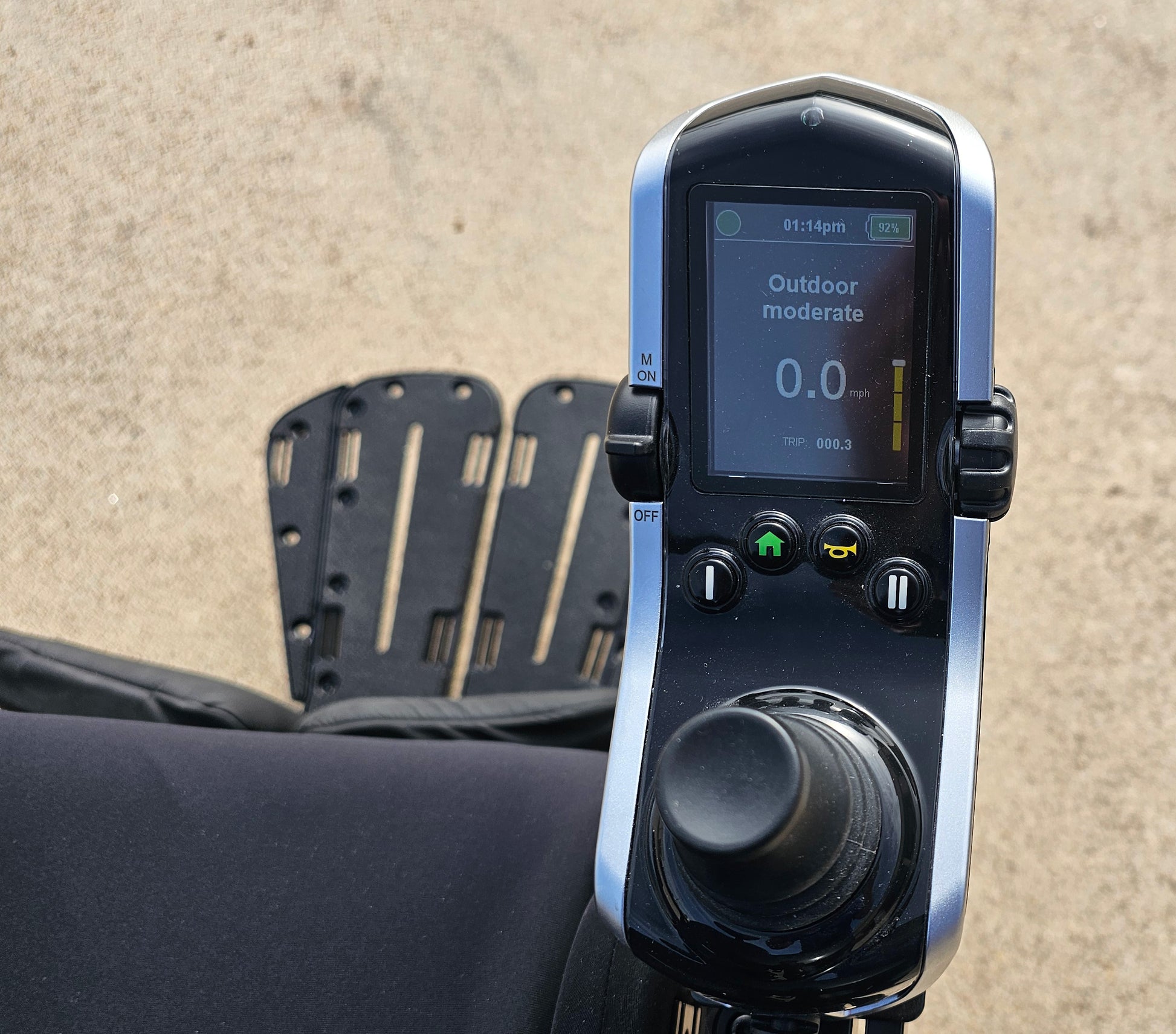 With an overall width of just 20.47” (with 12.5” drive wheels), the Stretto glides easily through tight corners, doorways, and narrow hallways — making it the ultimate solution for indoor use. Paired with independent Smooth Ride Suspension (SRS), it delivers a remarkably soft, stable, and quiet ride whether navigating home floors or outdoor paths.